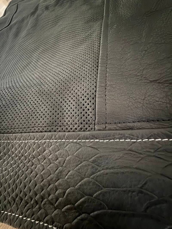 Ein besonderes Highlight ist die edle Schlangenlederoptik im Schulter- und Gürtelbereich, die der Weste einen aggressiven, exklusiven Look verleiht.